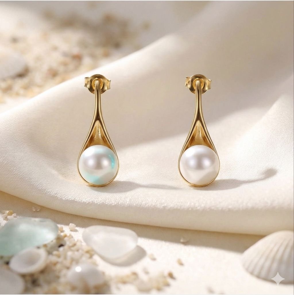 Timeless pearl drop earrings crafted in a sleek gold finish — perfect for adding elegance to both everyday and festive looks.