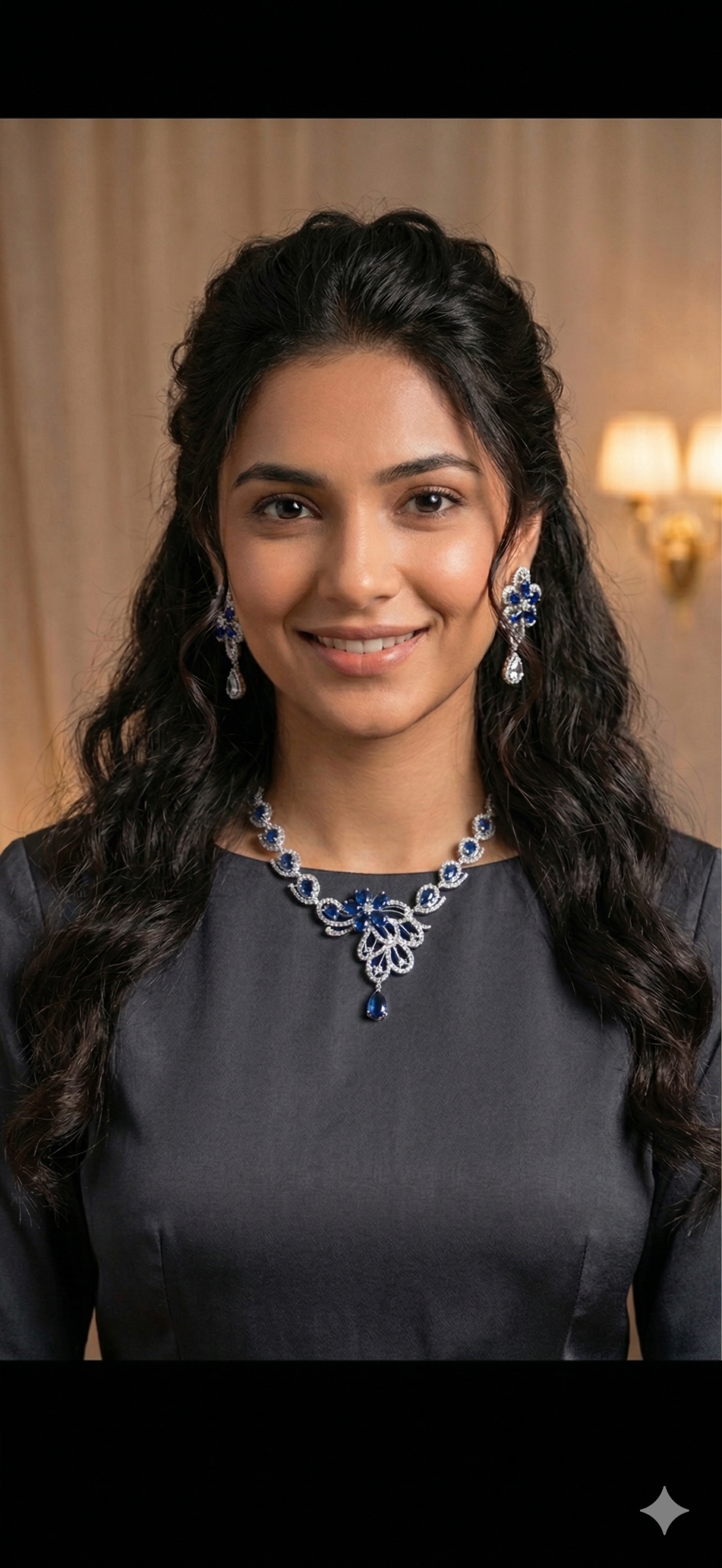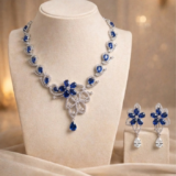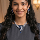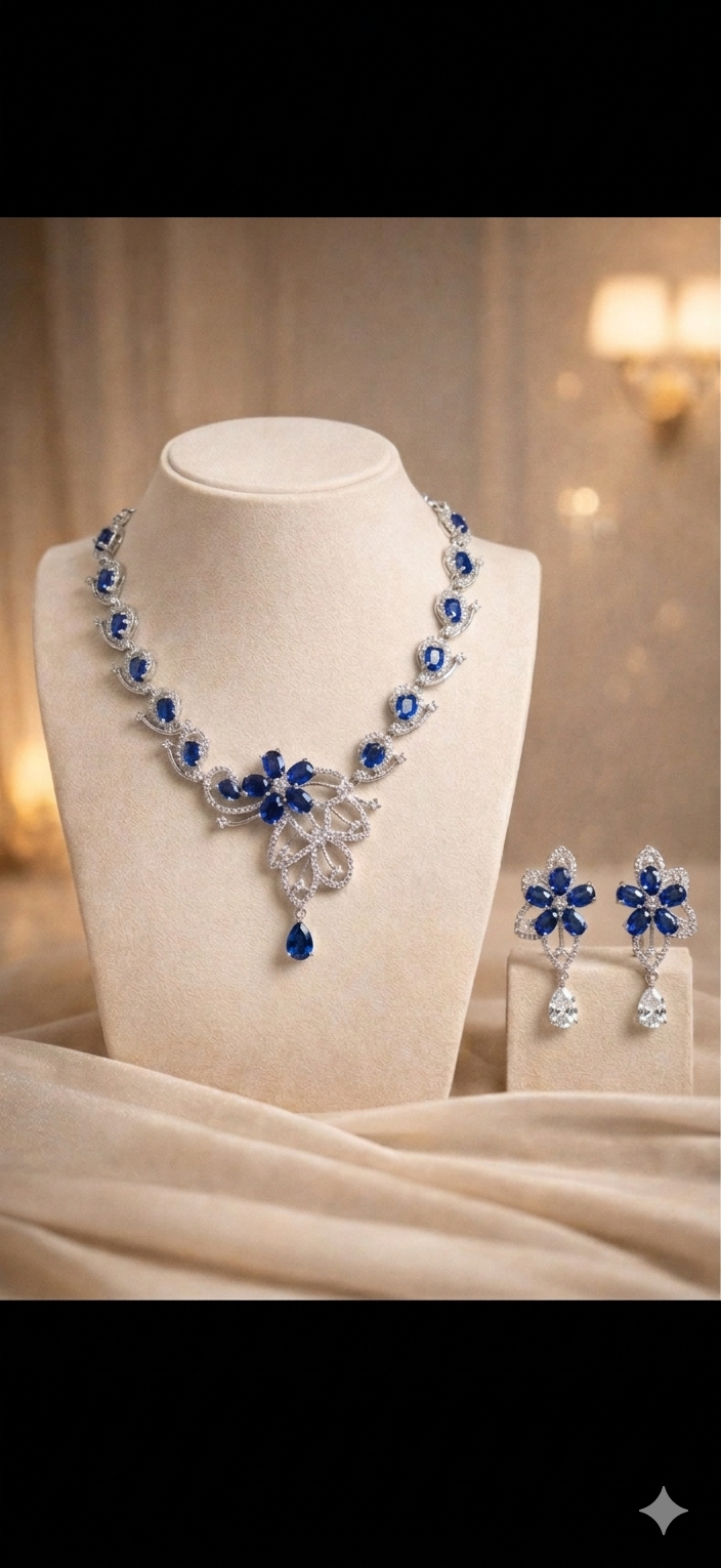 Hand-crafted with brilliant-cut imitation diamonds that catch the light from every “angle,” it sits high on the collarbone for a look that is both intentional and effortless. Paired with delicate teardrop earrings that add a soft, artistic grace, it’s the perfect uniform for gallery hops, client pitches, or 2 AM brainstorms. This isn’t just jewellery; it’s a vibe check for your soul.