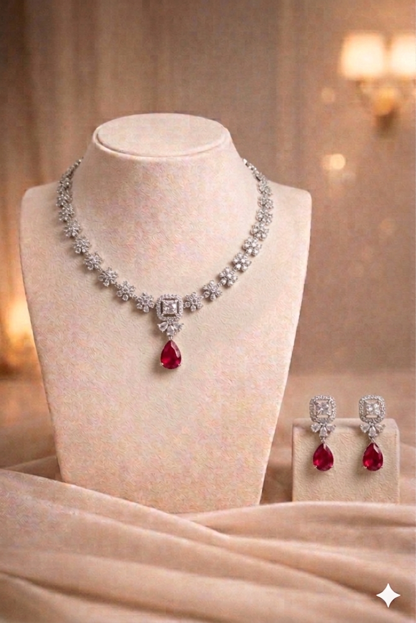 Okay, let’s talk about the ‘Red Flag’ set—because if you’re going to be a problem, you might as well be a sparkling one. This isn’t your typical “good girl” jewellery. That deep, blood-red teardrop stone is giving major “don’t touch my phone” energy. It’s bold, it’s unapologetic, and it’s for the girl who treats her life like a high-stakes drama series and never misses a plot twist.